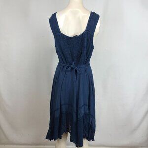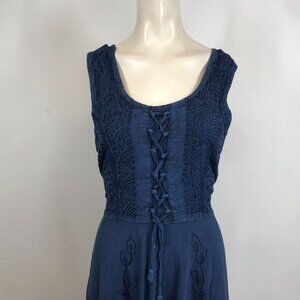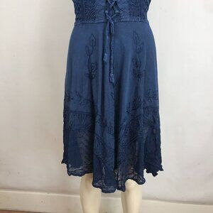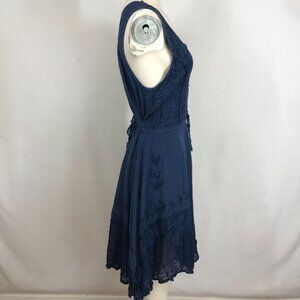 SAKKAS - WOMEN'S L/XL - NAVY 100% RAYON SLEEVELESS ROUND NECK EMBROIDERED DRESS