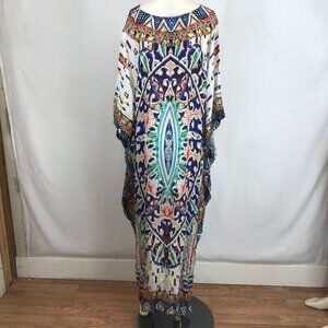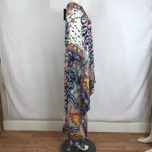 SAKKAS - WOMEN'S ONE SIZE - MULTICOLOR SHORT SLEEVE BEADED V NECK COVERUP