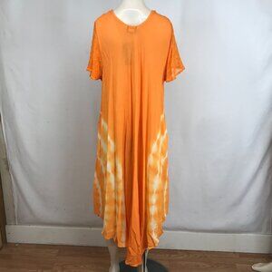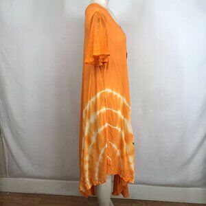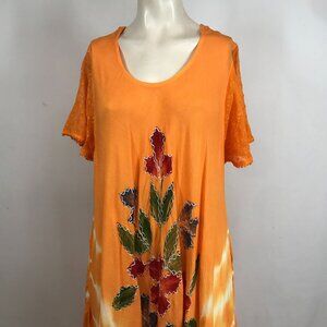 SAKKAS - WOMEN'S ONE SIZE - ORANGE EMBROIDERED PAINTED FLORAL CAP SLEEVE DRESS