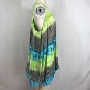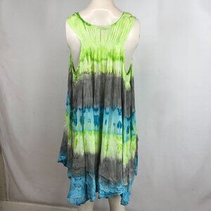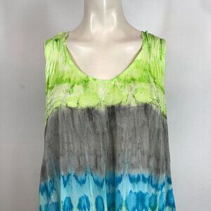 SAKKAS - WOMEN'S PLUS SIZE -TIE DYE SLEEVELESS V NECK RAYON EMBROIDERED DRESS