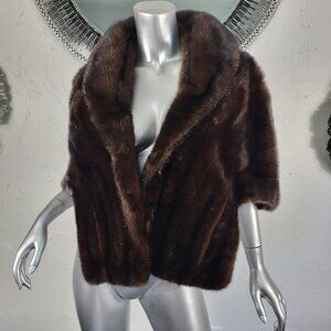 SAKOWITZ~VINTAGE~S/M/L~BROWN RANCH MAHOGANY GENUINE REAL MINK FUR STOLE COAT