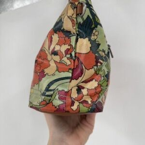 SAKROOTS Floral Flower Power Peace Small Satchel Tote Coated Canvas Bag green
