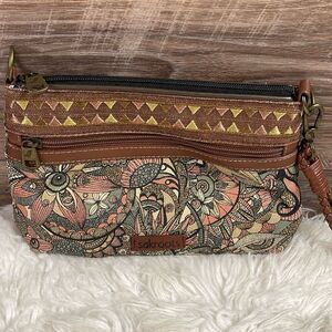 SAKROOTS Floral Wristlet Purse Handbag Braided Strap 10” W x 6 1/2”L