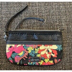 SAKROOTS Lot Of 2 Black Floral Shimmer And Brown Floral Wristlet