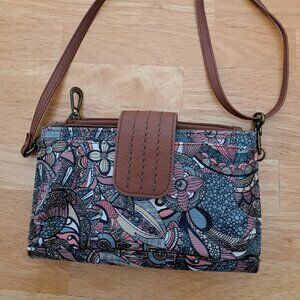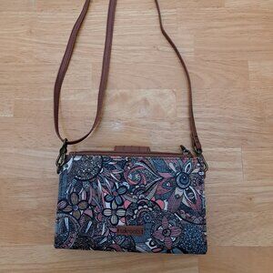 SAKROOTS Olympic Smartphone Crossbody Clutch Wallet Sienna Brown Floral