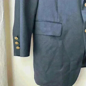 This men’s blazer is a wool/cashmere blend and is in excellent used condition. A stunning navy color with beautiful button details. 41L