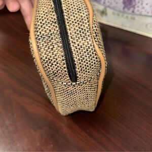 SAKS FIFTH AVE MEN’S TAN BLACK BURLAP LEATHER COMBO DOPP KIT TOILETRY BAG