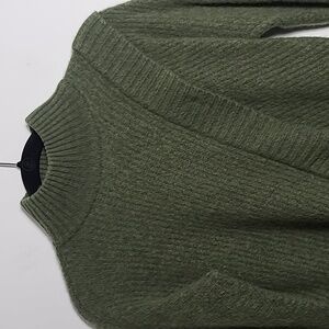SAKS FIFTH AVENUE 100% Cashmere Wrap Hem Mock Neck Green Sweater Size Medium