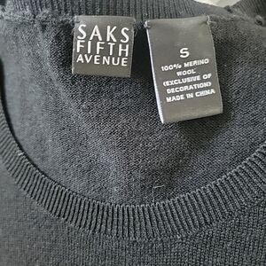 This Saks Fifth Avenue black sweater is a luxurious addition to any wardrobe. Made from 100% Merino Wool, it features a tight-knit rose pattern, long sleeves, and a boat neck neckline. The beaded and applique accents add a touch of elegance, making it perfect for winter, fall, or spring seasons. With its small size and regular fit, this sweater is a stylish and timeless piece that can be dry cleaned only for maintenance. This is in excellent preloved condition.