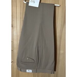 These Saks Fifth Avenue dress pants are tailored for men in a size 34, made from cocoa brown wool with a flat front design. They feature a zip and button closure with a hook & eye detail, and have slash pockets. The inseam measures 29 3/4 inches, suitable for regular sizing. The pants are recommended for dry clean only and are crafted in the United States, showcasing a sophisticated style suitable for formal occasions.