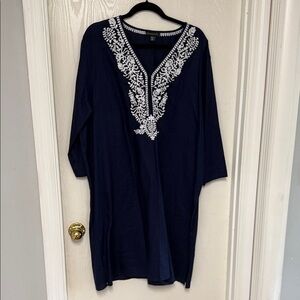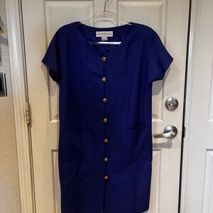 SAKS FIFTH AVENUE DENIM BLUE WHITE STRIPE DRESS SZ M