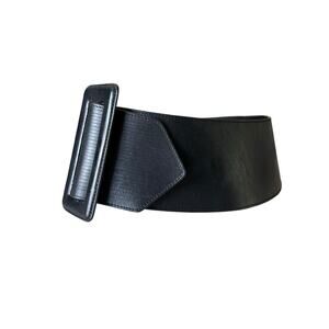 SAKS FIFTH AVENUE Italian Leather Black 4" Wide Belt Sz M Corset Split Band