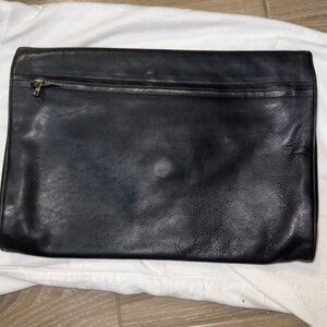 SAKS FIFTH AVENUE MADE IN ITALY VINTAGE CALF LEATHER ENVELOPE CLUTCH W GOLD TRIM