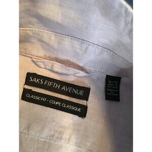 The Saks Fifth Avenue Men's Purple Classic Fit Button Down in size XL is a luxurious 100% linen shirt. This long-sleeve shirt offers a comfortable, classic fit perfect for any occasion.