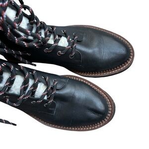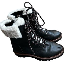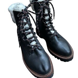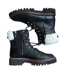Leather lug boots contrasted with faux fur for a cozy look and feel.