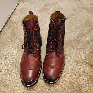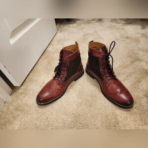 SAKS FIFTH AVENUE Mixed Media Leather & Suede Ankle Boots Red Size 12