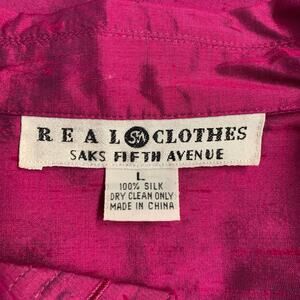 REAL CLOTHES by SAKS FIFTH AVENUE jacket blazer in a fuchsia pink silk shantung featuring a point collar, two patch pockets, and button closure.