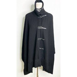 SAKS FIFTH AVENUE THREADS Black Merino Wool PONCHO SWEATER CAPE Small Oversized