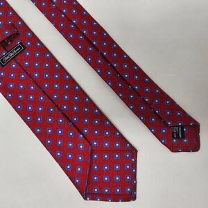 SAKS FIFTH AVENUE WOOL SILK TIE RED BLUE SQUARE POLKA DOT PATTERN TEXTURED 3"