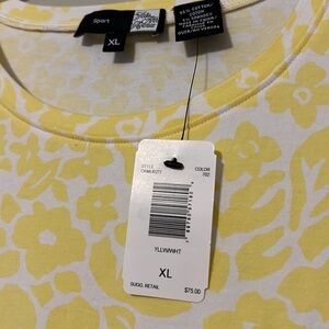 SAKS FIFTH AVENUE XL womens yellow white floral Hawaiian short sleeve tshirt NWT