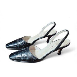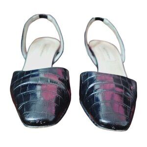 SAKS FIFTH AVENUE black leather square toe slingback 2.5" low heels size 8B