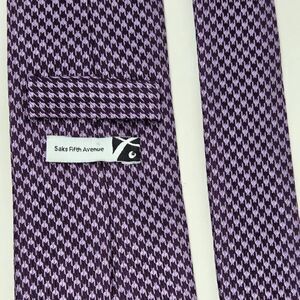 SAKS FIFTH AVENUE HAND MADE SILK TIE PURPLE VIOLET HOUNDSTOOTH SATIN 3.25" X 59"