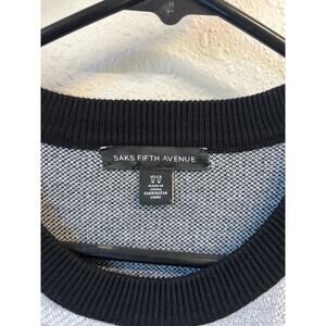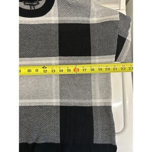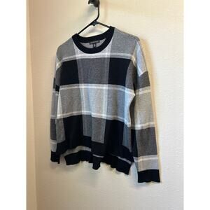 SAKS Fifth Avenue Black Gray Plaid Crew Neck High Low Box Sweater Size Medium
