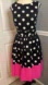 RED Saks Fifth Avenue Black Dress with White Polka Dots and a vibrant pink hem and zipper!!