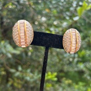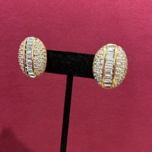 • Stunning Vintage S.A.L. Signed Clear Swarovski Crystal Oval Gold Tone Clip-on Earrings
