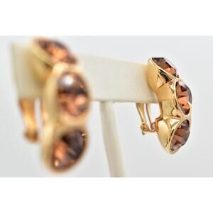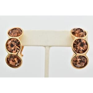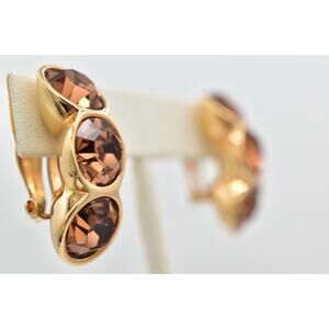 SAL Swarovski Chocolate Crystal Clip On Earrings Rhinestone Gold Signed BinBK