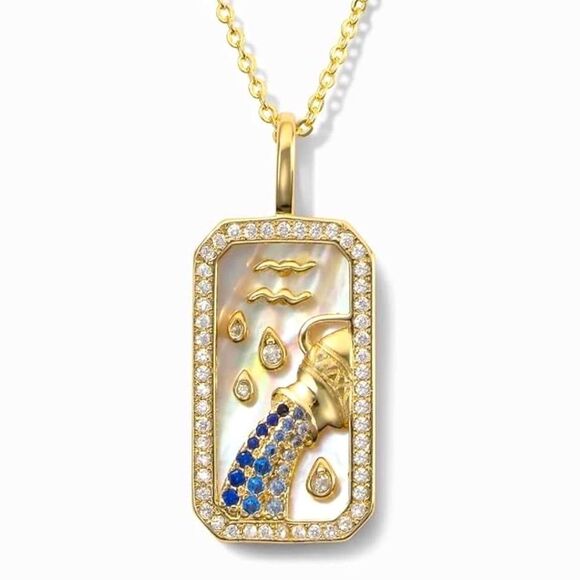 SALE 18k Stamped Gold Filled Aquarius Iridescent Horoscope Crystal Necklace