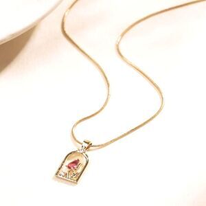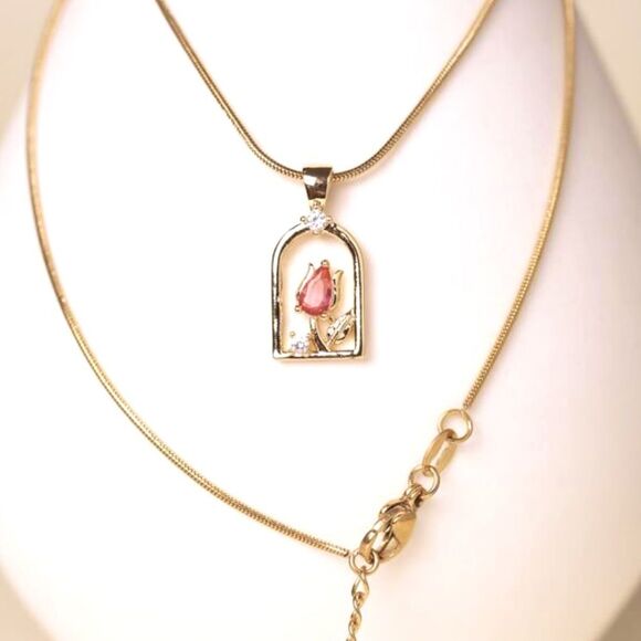 SALE 18k Stamped Gold Filled Crystal Tulip Framed Flower Pendant Necklace