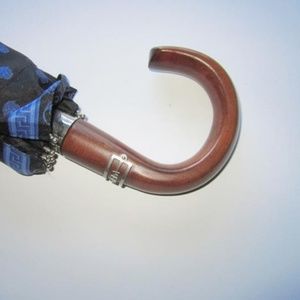 Versace Umbrella Medusa Vintage. 100% Authentic. Late 80's, early 90's. Preowned excellent Condition! Vintage item, gently used. Made in Italy. Wood handle features Versace script. Medusa accents and print. Push button opening. Works well. Rare vintage item, Top rated trusted seller and suggested user selling authentic luxury items on posh since 2014. Posh Certified luxury reseller.