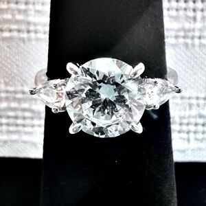💥SALE 2CT 925 Sterling Silver CZ Brilliant Cut 3-Stone Ring EUC Like New Sz 4.5