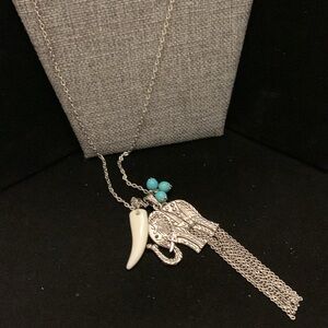 ♥️ SALE 3for$15! NWT Mudd Long Silver Tone Necklace with Elephant Pendant 34”
