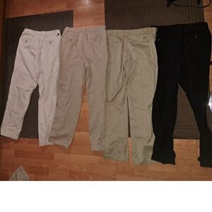SALE! 4 pairs of Men's Khaki's sz Waist 32 & 33 / length 32 - Preowned in great condition! Khaki Dockers 33 x 32 / Kirkland 33 x 32 / Dickies 32 x 32 / Deep black non fade soft Savane 32 x 32 *** All in great condition with working zippers and no missing buttons
