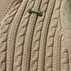Charm pink cardigan sweater with a rhinestone zipper and a dog bone pin!! So adorable !! 60% cotton 40% acrylic!