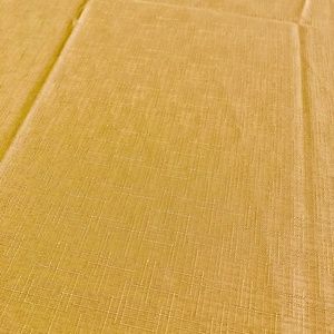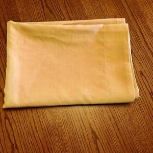 I bought this tablecloth in the late 90's to use on my Apple Fest craft show tables every fall. It is in great condition, a rich gold color, woven, hemmed all around. Used 3 times. Pictures show wrinkles due to storage.