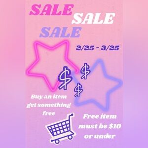 Buy an item, get something free! Free item must be $10 or under and have a star emoji ⭐️ next to it.