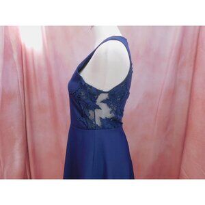 SALE Alya Small Navy Blue Fit and Flare Dress Lace Panel Detail Sleeveless