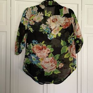 Sheer floral top with pockets and roll up sleeves. In good condition! Bundle and save 😀