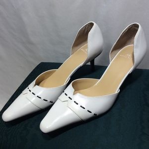 Finely-crafted shoes from Anne Klein. The 2 inch heels and shiny white leather radiate authority.