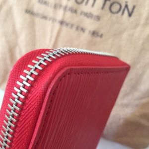 Like 🆕 Clemence Epi Wallet in Coquelicot (M60913). Nothing wrong with it & works flawlessly. Very clean; no stain whatsoever. There’s one small mark on one edge; not so visible; just want to mention everything that I can. The date code is MI3186. Made in France. I have tried to take a picture of the date but since it's in silver color and little space, it's kind of hard to do so as I don't want to stretch it out. Free authentication by Poshmark for item above $500. 🎄 Sale! Send me your offer!