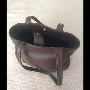 Vintage all leather brown Coach bag with snap closure & 2 large inside pockets. This bag is "all leather" inside and outside. Gently used in excellent condition!