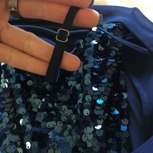 Fantastic condition. Never used. Zipper in the back of the sequin while chiffon pulls over. Measurements: size 0, bust 28”-29”, longest side of the chiffon is 54”. It’s a beautiful dress to wear in the evening.