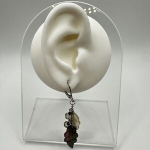 Carved mother of pearl shell in a leaf shape! Accented by bi-cone crystal beading and all in silver tone hardware.