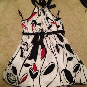 Halter top- white with black and red design! Easy to dress up with black slacks and some earrings. Worn once!