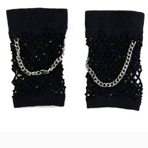 SALE Black Fishnet Knit Chain Design Fingerless Gloves LAST PAIR