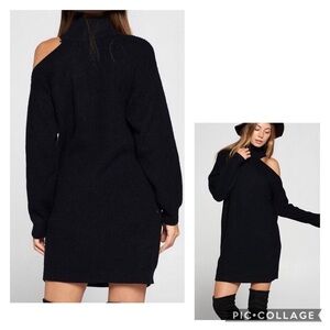 Black Maxi Sweater w/One Bare Shoulder. Has semi high neck. Wear as a mini or sweater. Versatile. Runs big. 100% Acrylic. Large Will fit XL & XXL