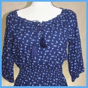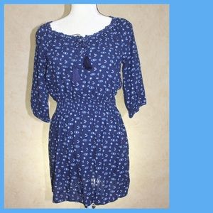 This will be one you pull out of your closet over and over again. Stretch elastic Scoop neckline with the tassel tie closure and elastic banded waist make for a flattering silhouette. Mini length can be adjusted by blousing up the top or pulling it down straight.